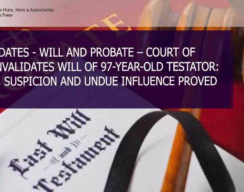 In Kong Kin Lay & Ors v Kong Kin Siong & Ors [2025] 5 MLJ 891, the Court of Appeal set aside a will executed by a 97-year-old testator, holding that there was real doubt as to testamentary capacity,